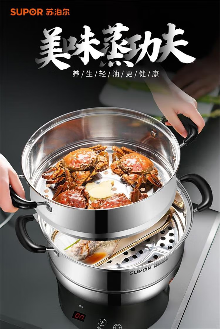 苏泊尔(SUPOR)蒸锅304不锈钢26cm蒸笼双层SZ26B46