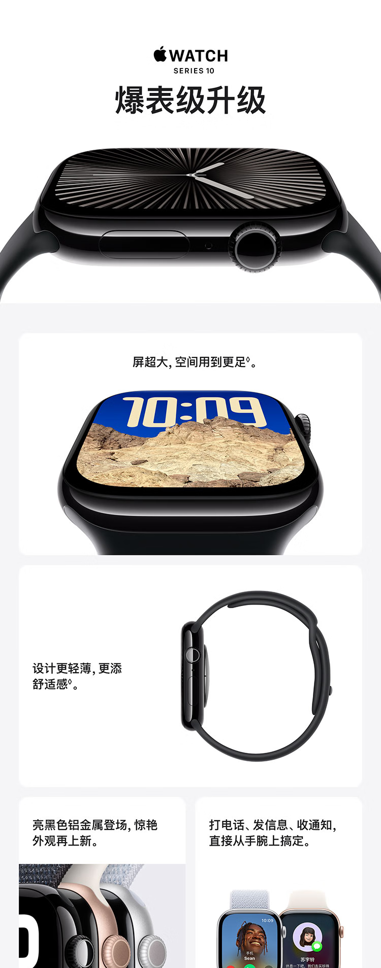 Apple/苹果 Watch Series 10 智能手表GPS款46毫米亮黑色铝金属表壳