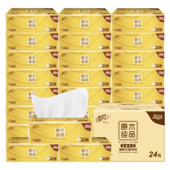清风 抽纸 原木金装 纸抽 面巾纸 360张*24包(加韧 可湿水 120抽每包)无香 母婴可用(整箱销售)