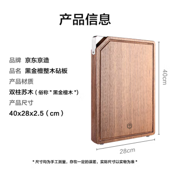 京东京造 黑金檀整木菜板加厚防霉防滑案板 家用剁骨砧板40*28*2.5cm