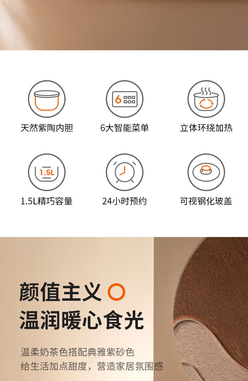 九阳 电炖锅煲汤锅陶瓷紫砂锅1.5L