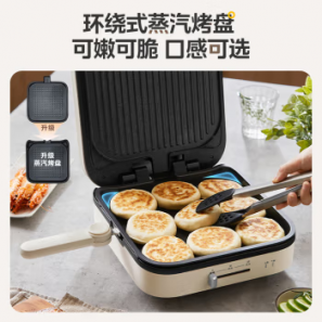 美的(Midea)电饼铛家用下盘可拆洗三明治早餐机煎烤锅 方形双面加热加深烙饼烤肉锅